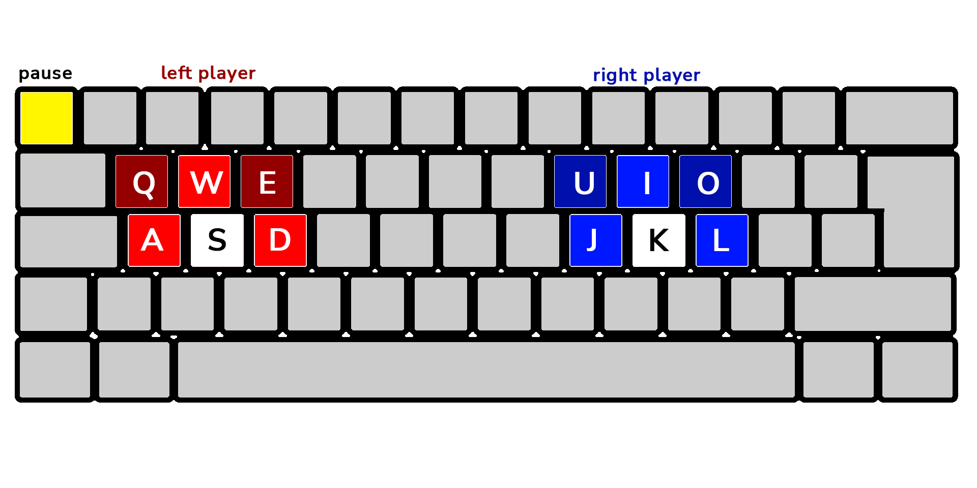 If you're playing solo, you can use either side of the keyboard, or your arrow keys.